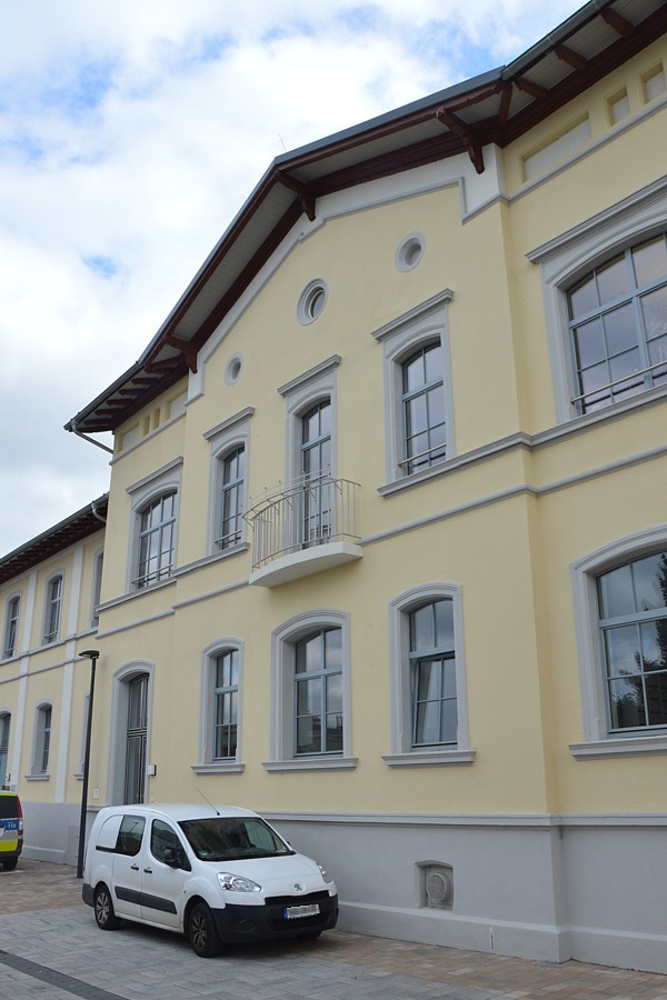 Verwaltungsgebäude II wurde gründlich restauriert. Die schäbig-braune Tünche ist einer blassgelben Farbgebung