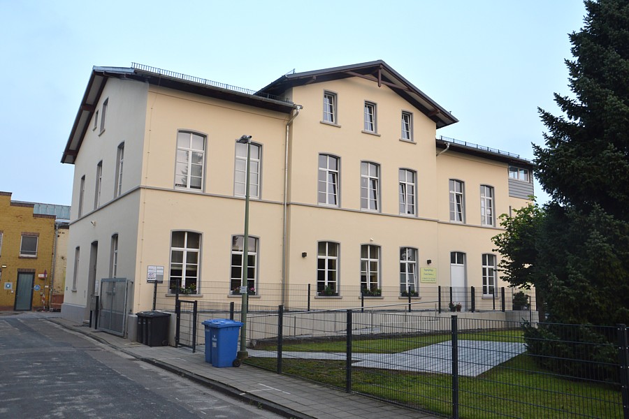 den Stil des älteren Baus in schlichteren Formen auf und beherbergt heute eine Pflegeeinrichtung.