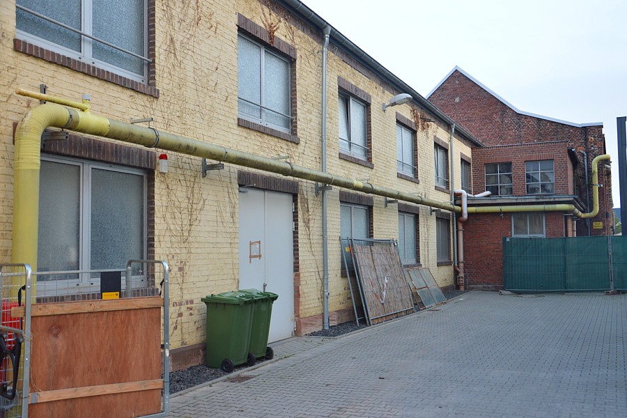 Der Hof an der Nordostseite der Richthalle I hat noch etwas vom spröden Charme früherer Jahre bewahrt. Hier waren der