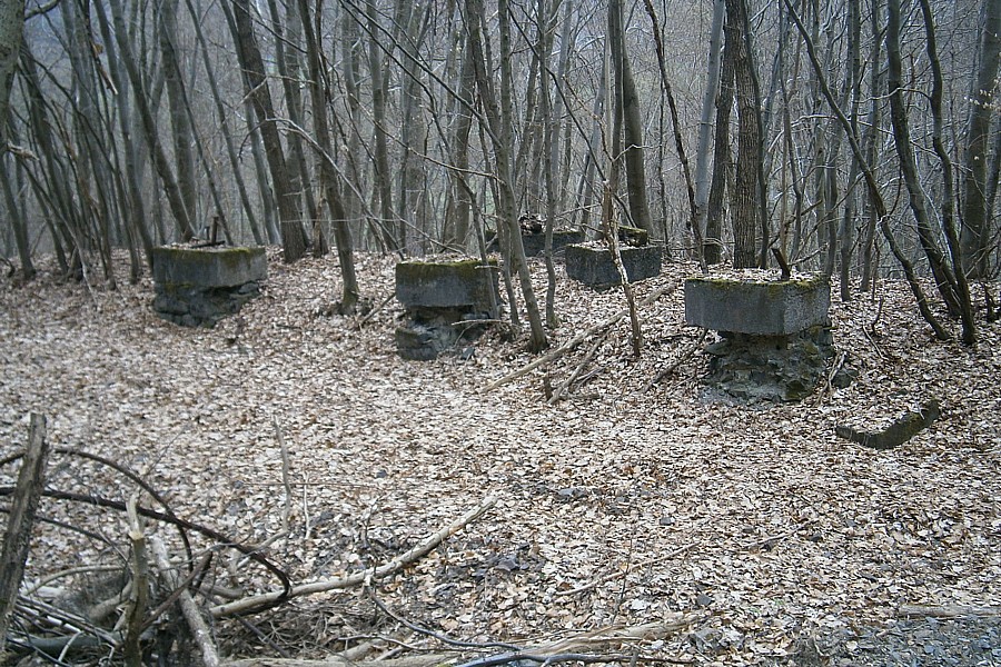 – Neben dem alten Gleisbett sind die Fundamente des Verladegerüstes noch erkennbar. Hier endete die Seilbahn vom Steinbruch.
