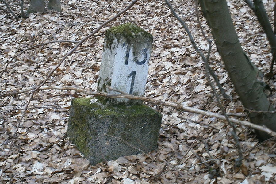 – In der Nähe des Anschlusses findet sich dieser Kilometerstein (km 13,1).
