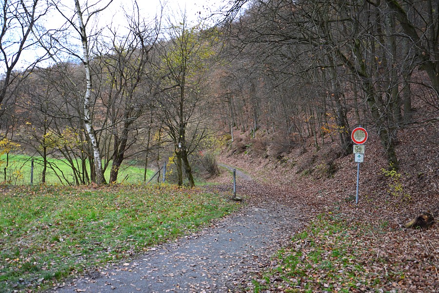 – Blick zurück: die ehemalige Gleistrasse von Grube Bohnenberg in Richtung Braunfels.