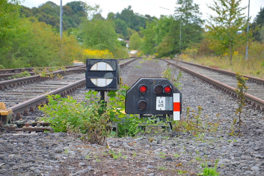 – Doppelt genäht hält besser: Am linken Ladegleis ordnet das Formsignal der Gleissperre „Halt! Fahrverbot“ (Sh 0) an, während das Lichtsperrsignal daneben nur „Halt!“ (Hp 0) gebietet. Jedenfalls fährt hier nichts!