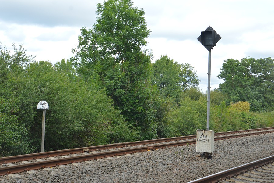 Gleisen der Gegengleisanzeiger Zs 6, der die Fahrt auf dem linken Streckengleis bis Wetzlar signalisiert.