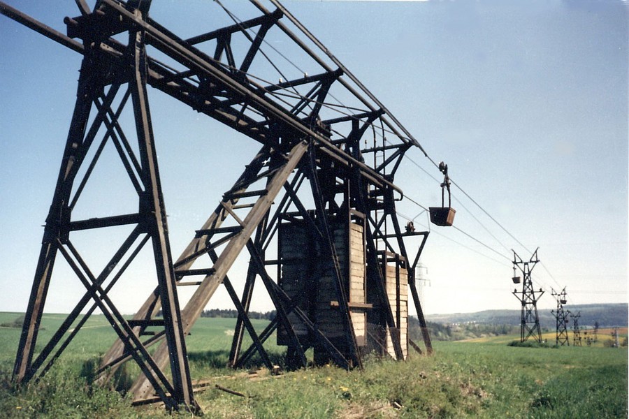 – Oberhalb des Dorfes Oberbiel befand sich die Seilspannstation. Mächtige Betongewichte sorgten für eine gleichmäßige Spannung des kilometerlangen Tragseils.