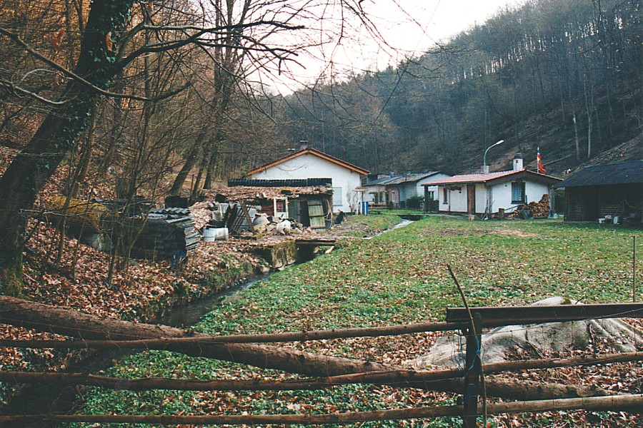 – Die Tagesanlagen vor dem Mundloch des Ferdinandstollens. Das linke Gebäude ist das ehemalige Mannschaftsgebäude, in dem sich auch das Steigerbüro befand.