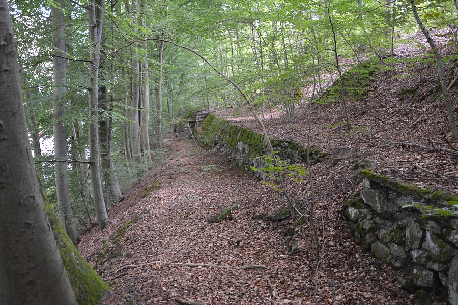 – Die in den 1930er Jahren errichteten neuen Tagesanlagen wurden aufwändig terrassiert. Das Stollenmundloch befindet sich im Hintergrund (nicht sichtbar), der Bahnhof Braunfels links außerhalb des Bildes.