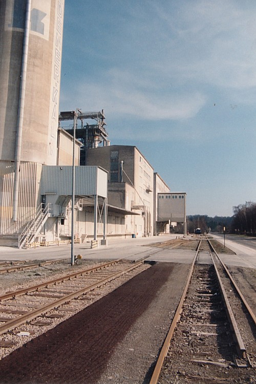 – In diesem Wegübergang vor dem Kalkwerk liegen 1997 noch Reste des dritten Gleises.