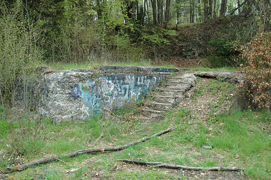 Der Sockel des Maschinenhauses. Herumliegender Abfall, Feuerstellen und die Schmierereien lassen erkennen, dass das