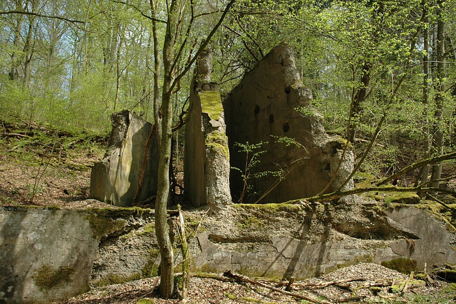 oben links erkennbaren Geländekante verlief die 600-mm-Bahn, über die die weiter südlich gelegenen Gruben (Dickenloh,