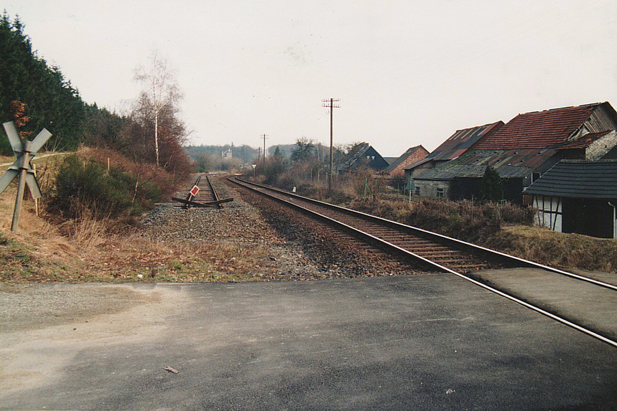 – Nach dem Rückbau endete das Anschlussgleis nahe dem Wilhelmsdorfer Friedhof an einem Schwellenkreuz mit Wärterhaltscheibe.