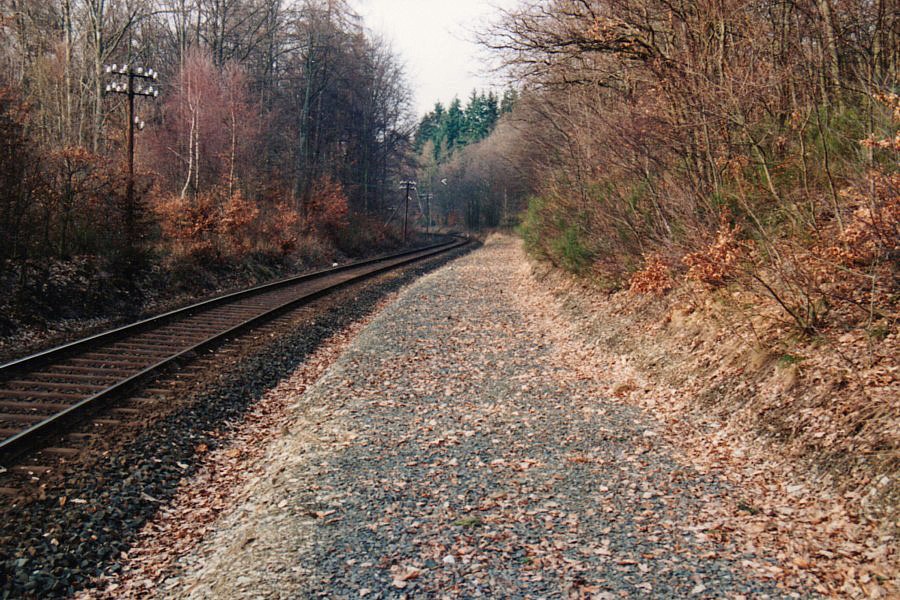 – Nach dem Rückbau zeigte über einige hundert Meter nur das Schotterbett neben der Strecke Richtung Hundstadt den Verlauf des um 1990 abgebauten Anschlussgleises an.