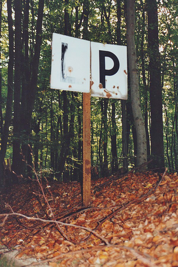 – Vor einem Waldwegübergang findet sich am Anschlussgleis diese alte Läute-Pfeiftafel. Sie ordnet an, zu pfeifen und bis zum Bahnübergang zu läuten.