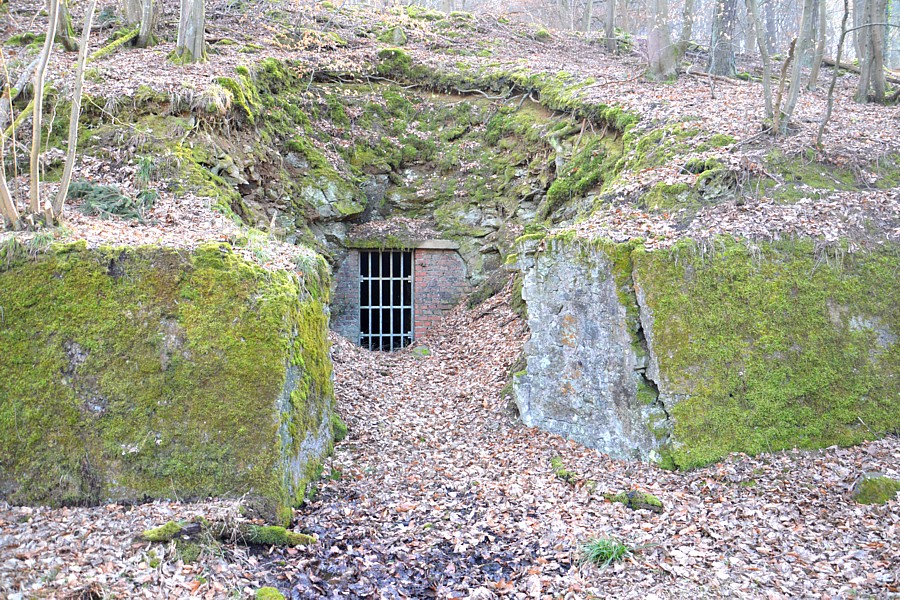 Der Blick von vorn zeigt, dass das ursprüngliche Stollenportal abgebrochen und durch eine neue, weiter zurückliegende Tür