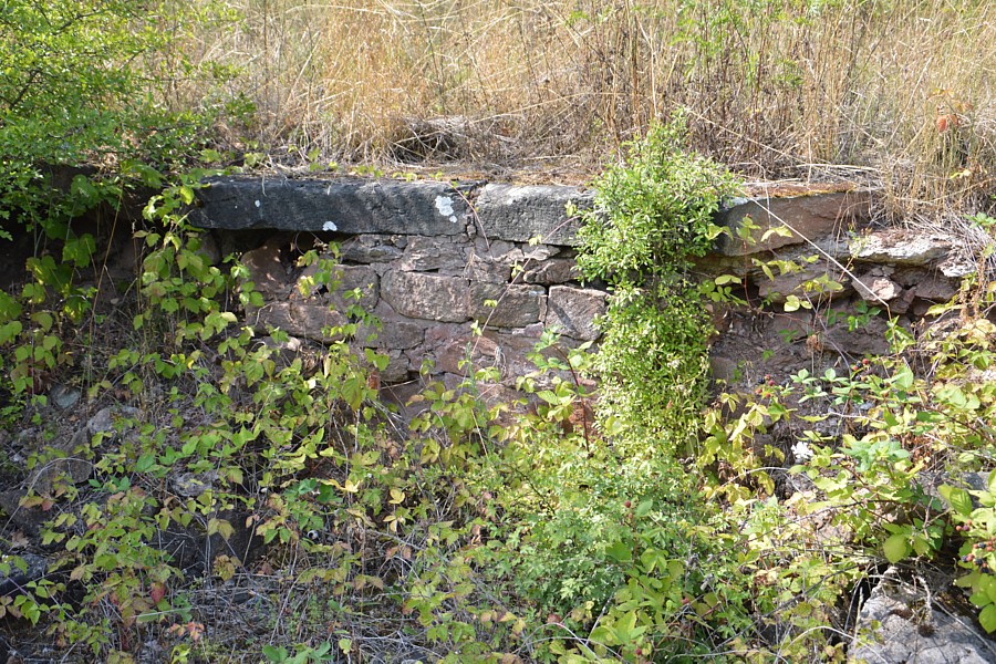 – An der Nordseite des Bahnhofs befand sich einst die Ortsgüteranlage. Im Gestrüpp finden sich hier diese Reste einer schön gemauerten Seitenrampe.