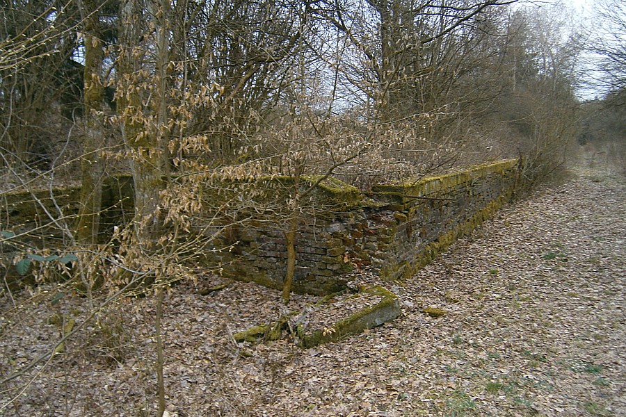 – In Höhe des ehemaligen Haltepunkts Bissenberg befindet sich diese aus Backsteinen gemauerte Rampe neben dem Bahndamm.