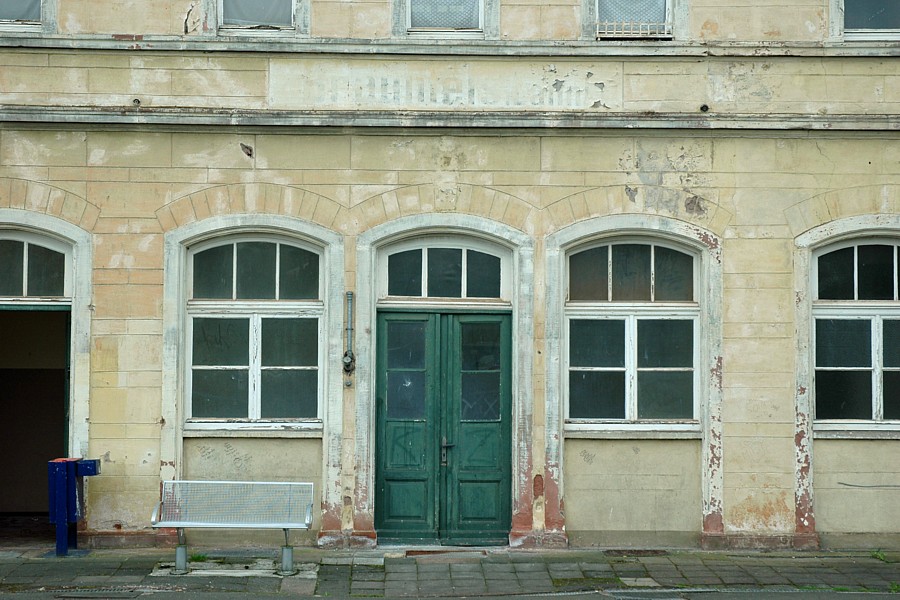 – Über der mittleren Tür des Empfangsgebäudes ist der alte Name der Station „Braunfels (Lahn)“ noch zu erahnen. Das Bahnsteigpflaster ist noch das alte...