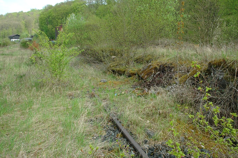 – Die Gütergleise sind entfernt, die Rampe stürzt nach und nach zusammen, die Natur erobert den Güterbahnhof zurück – und dennoch findet sich nach kurzem Suchen unter dem Gestrüpp noch ein Gleisrest...