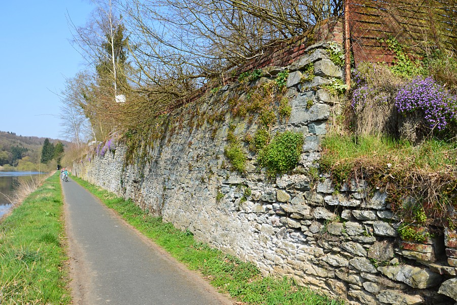 – Die Chemische Fabrik befand sich auf dem relativ schmalen Geländestreifen zwischen Bahnkörper und Flussufer; sie hatte dafür eine enorme Längsausdehnung. Die Länge der Stützmauer am Lahnufer lässt es noch heute erkennen.