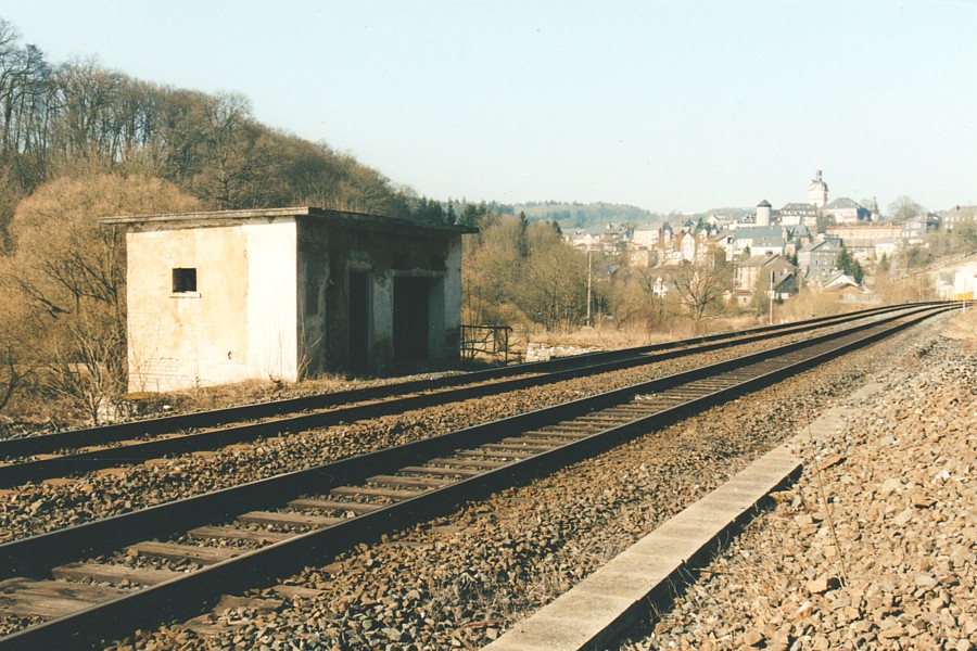 Das Stellwerksgebäude der ehemaligen Abzweigstelle Gensberg saß wie ein Schwalbennest auf der Kante des (hier