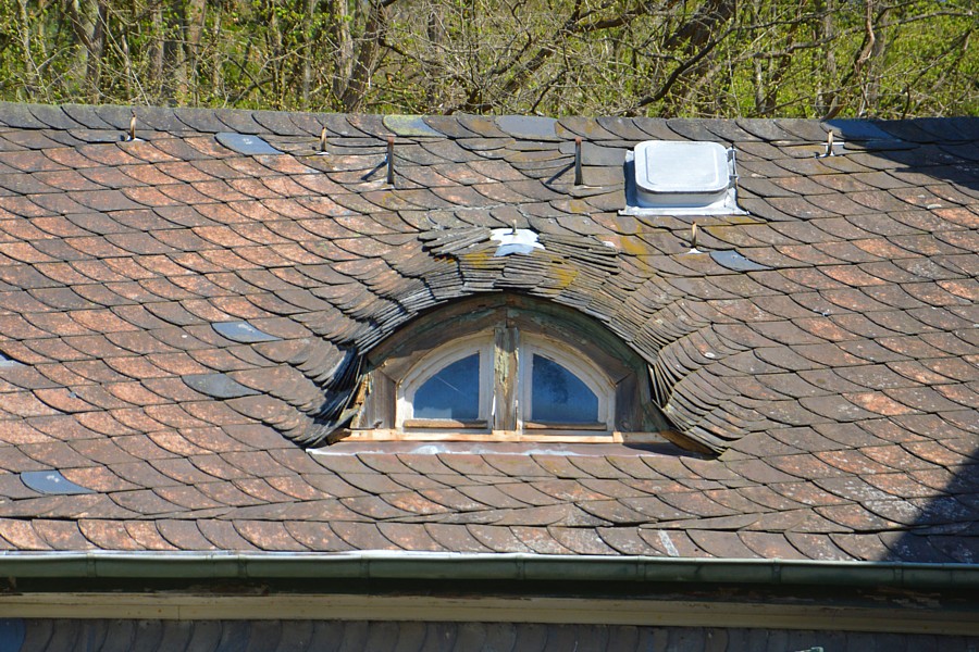 Diese kleine Fledermausgaube im Dach über der Dienstwohnung ist ein typisches Element des preußischen Heimatstils und