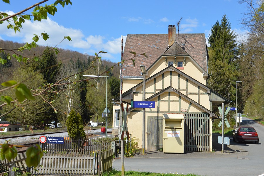 – An der Stirnseite des Empfangsgebäudes ist der kleine Güterschuppen und an diesen ein noch kleinerer Schuppen angebaut. Modellbahn-Idylle durch und durch!