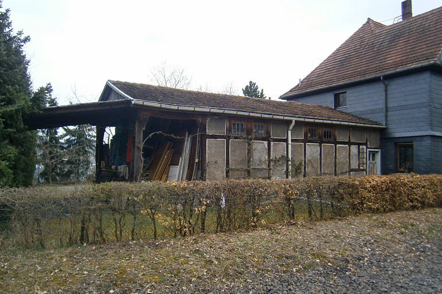 – An das Empfangsgebäude ist der Fachwerk-Güterschuppen angebaut; zumindest in den letzten Betriebsjahren gab es davor kein Ladegleis mehr.