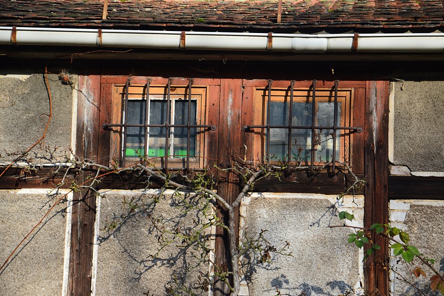 – Zwei vergitterte Fensterchen am ehemaligen Lokschuppen.