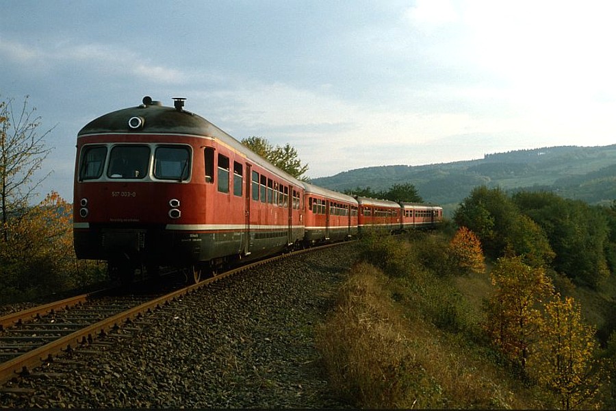 Wenige Jahre vor der Stillegung führte die DGEG einen aus Akkutriebwagen der Baureihe 517, den sogenannten