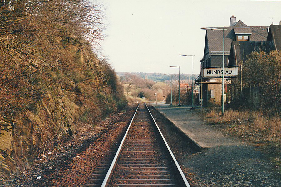 – Haltepunkt Hundstadt vor dem Beginn des Ausbaus der Taunusbahn; Blick in Richtung Wilhelmsdorf (Ts).