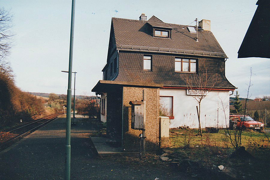 Das Empfangsgebäude des Haltepunkts Hundstadt; recht stattlich für eine kleine dörfliche Haltestelle. Zum Zeitpunkt der