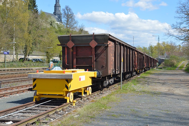 – Die neue „Seilrangieranlage mit Pufferwagen“ von Windhoff kann bis zu zehn Tonwagen verschieben. Und eine Schubkarre ist auch dabei.