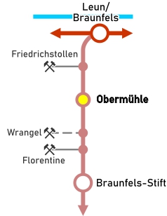 Bei der ehemaligen Schlossbrauerei, an einem der Zugänge vom Iserbachtal zur Stadt, befand sich der Haltepunkt Obermühle,