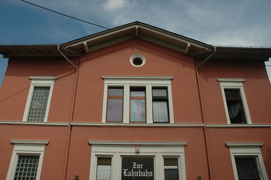 – Der schlichten klassizistischen Vornehmheit des Empfangsgebäudes (um 1862 erbaut) können weder Glasbausteine noch die unpassende Frakturschrift der Gaststätte etwas anhaben.