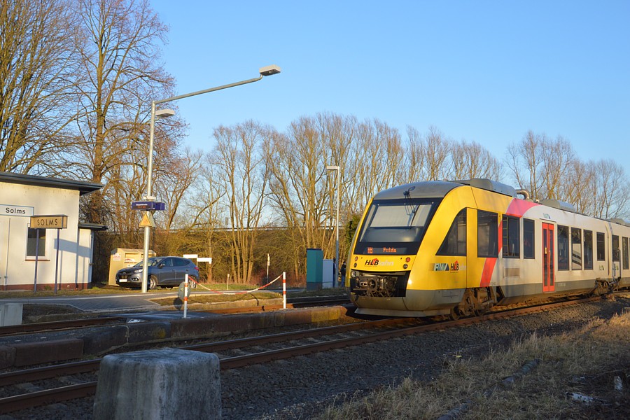 – Die abendliche Regionalbahn nach Fulda wird von der Hessischen Landesbahn mit einem LINT-Triebwagen gefahren.
