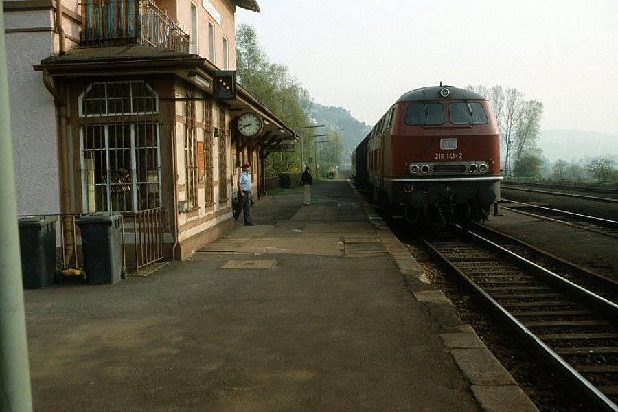 – 218 141 wartet mit ihrem Personenzug am Hausbahnsteig auf den Abfahrtauftrag. Die Ausfahrt ist gezogen, und der Fahrdienstleiter ist schon auf dem Weg...