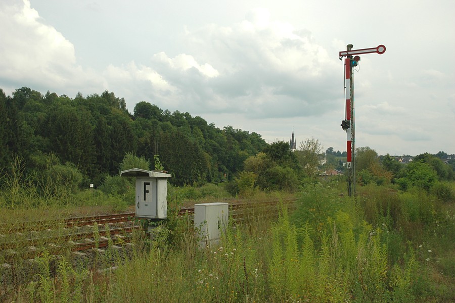 Früher stand das Einfahrsignal aus Richtung Weilburg vor dem Villmarer Tunnel. Das Blocksignal A ist inzwischen in den