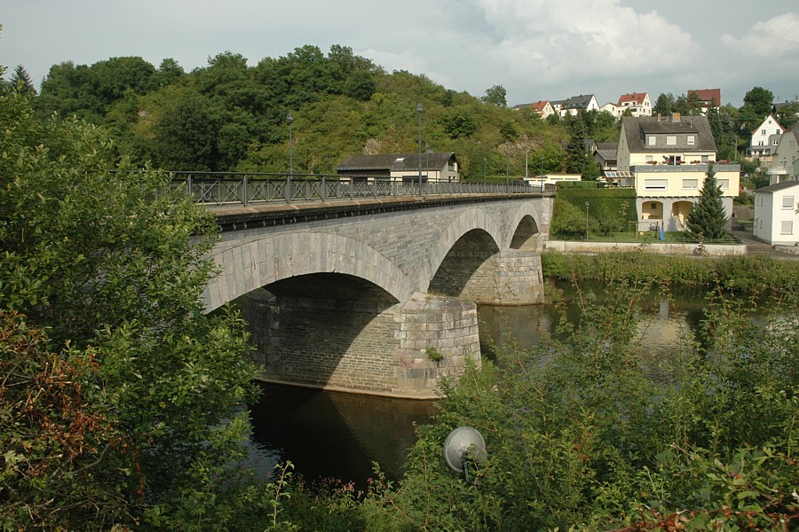 – Die dreibogige Lahnbrücke wurde 1894 bis 1896 errichtet, um den Bahnhof und die dahinter gelegenen Marmorbrüche besser an den Ort anzubinden. Sie besteht fast vollständig aus heimischem Marmor.