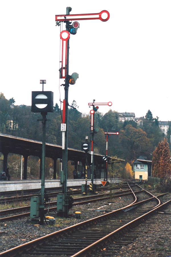 Sperrsignal vor dem mittleren Hauptsignal E10 zeigt noch die 1926 eingeführte ältere Bauform, die nur bis 1936 (!)