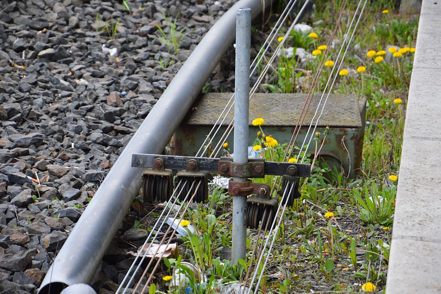 sind einige der Rollen nicht mehr mit Doppeldrahtzugleitungen (vulgo: Stelldrähten) belegt. Auch die dahinter