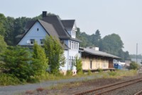 ebenso wie das große Dienstgebäude der früheren Güterabfertigung. Das Empfangsgebäude hebt sich von den Typenbauten entlang