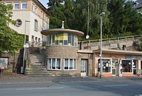 Lokomotivwasser versorgt wurde. Am Fuße der Treppe begrüßt ein zauberhaftes Fünfziger-Jahre-Ensemble die Bahnreisenden, und
