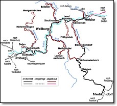 ![]() Lieber Besucher, Die hessische Lahntalbahn zwischen Wetzlar und Limburg und ihre Nebenstrecken sind das Thema dieser Website. Durch einen Klick auf eines der nebenstehenden Bilder gelangen Sie auf die Übersichtsseiten für die einzelnen, hier dargestellten Bahnstrecken. Dort finden Sie in einer Streckengrafik alle Bahnhöfe und Haltepunkte, alle Tunnels und die wichtigeren Brücken, außerdem eine Übersicht über die Anschlussstrecken. Sie wollen lieber nach einem Bahnhofsnamen, einer Anschlussbahn, einem Bergwerk o. ä. suchen? Möchten eine Übersicht über die verfügbaren Gleispläne? Oder suchen nach einem weiterführenden Link? Dann schauen Sie doch mal in eine der Rubriken unten. Vielleicht ist ja das richtige dabei. Auf jeden Fall freue ich mich über einen Kommentar, den Sie in meinem ![]()